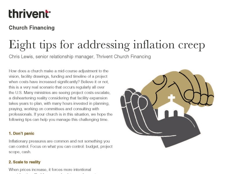 Thrivent Church Financing wants to provide you with information, tools and resources that support your role as a financial decision-maker. Please contact us if you have questions or suggestions for additional resources and tools. You can reach us by calling 800-984-9425, emailing